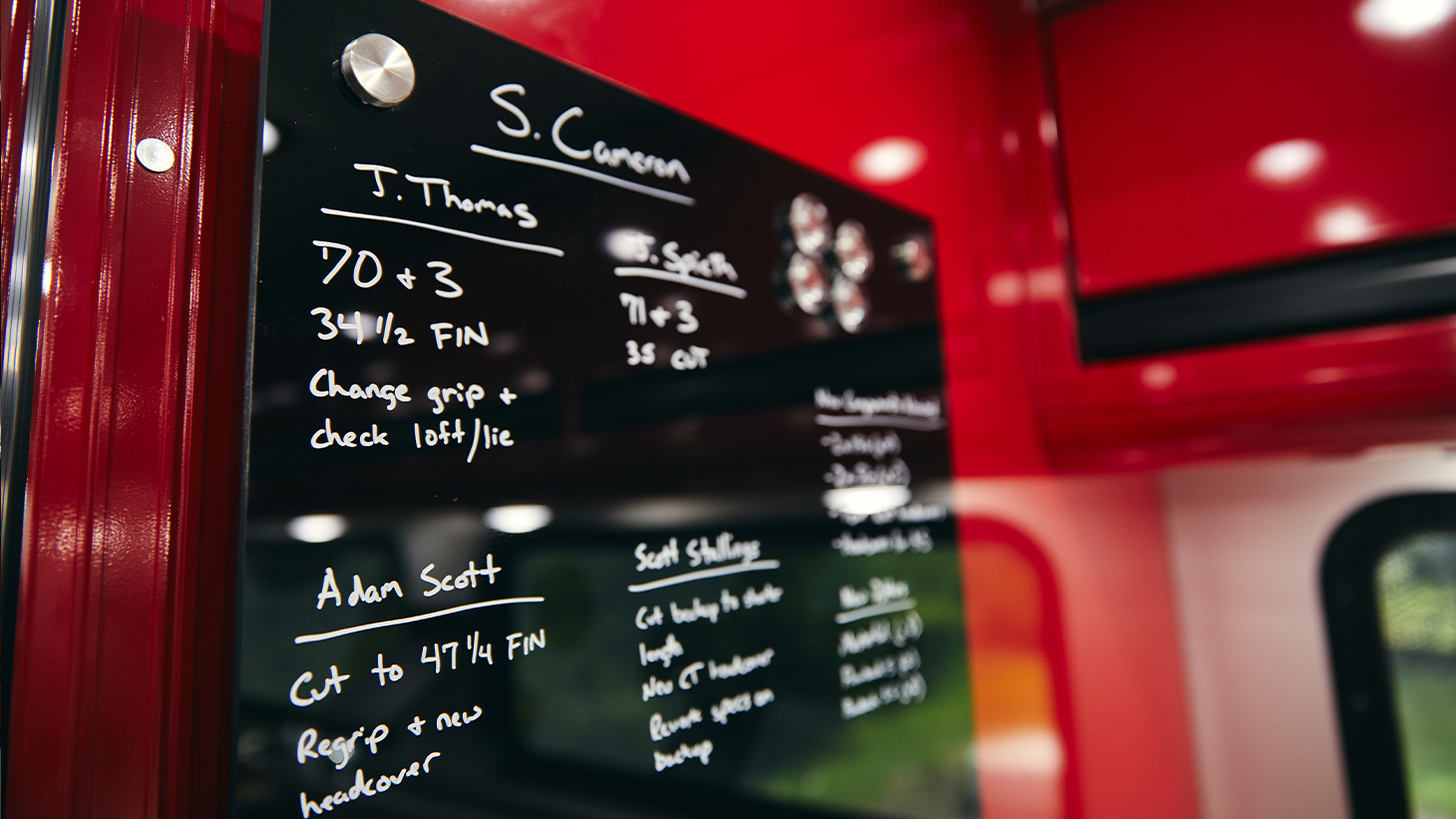 The customized trailer is stocked with TS metals, T-Series, MB and CB irons, Vokey Design Wedges and Scotty Cameron Putters, along with an extensive library of custom shafts, grips – and Scotty Cameron headcovers. A computer database stores the custom specs of every club that the team has ever built.