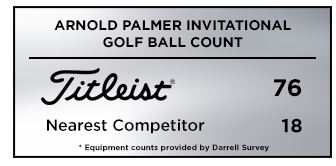 At this week's Arnold Palmer Invitational, Titleist is the overwhelming golf ball of choice with 76 players in the limited field trusting a Pro V1 or Pro V1x golf ball, more than four times the nearest competitor with 18 and more than all competitors combined.