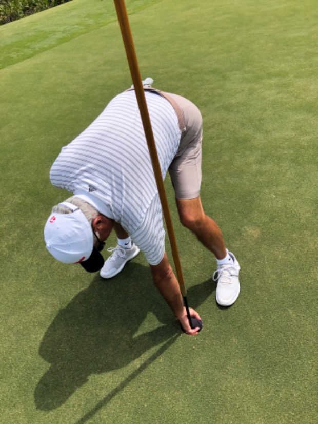The hole was playing about 165 yards. Trying to decide between a 6 or 7 iron. Chose the 6. Hit a good shot right towards the hole. There is a mound on the green and the hole was tucked in behind it. We saw the ball hit the green and roll in the direction of the hole, but then it disappeared behind the mound. I thought it might have rolled off the back of the green. We all jokingly talked of a hole-in-one while the others teed off. Drove up to the green and there was no ball in sight. Assuming that I rolled off, I grabbed my wedge and putter and walked onto the green. Thinking that there’s always a chance, I walked passed the hole and glanced in. There was my ball! I couldn’t believe it happened to me. What a surreal moment. There were high fives and back slaps from our group. We even got some hoots and hollers from an adjacent green! I did buy the customary drinks at our neighborhood watering hole since the course does not have a clubhouse yet.