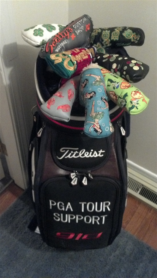 I have been a Titleist supporter since I can remember. I'm not sure how long I've been a TT member, but I have enjoyed this opportunity to connect with Titleist, this forum and the discussions. Like many of you, Titleist has hooked me up with lots of cool stuff since I've been a TT member. I've gotten a T shirt, a hat, a towel, prototype balls, and even a box of Pro V's, but what I happened recently is ridiculous. I came home on Thursday to a huge box from Acushnet, and inside was a Tour used Titleist staff bag.