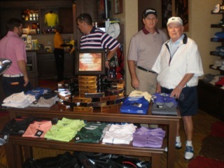 DOGLOSKI and Chris P. checking out the FJ/Titleist specials table.