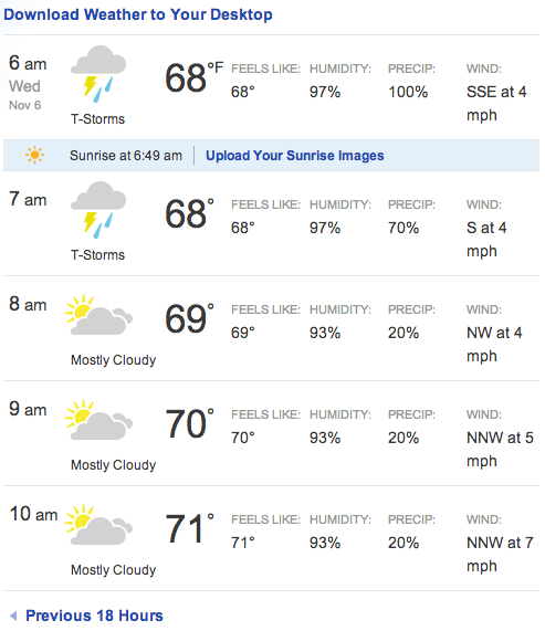 I know it's early, but here is what the hourly forecast is looking like for Wednesday. Let's hope it holds up...