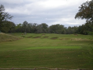 Just back from a terrific day at Wolfdancer Golf Club, Hyatt Lost Pines Resort, outside Bastrop, TX. It was great to meet the other fourteen Team Titleist members who participated (yes, even those of you I'd met before). All in all a very good day, despite the changeable weather: drizzle, then sun, then a cold front moving in with 20+ mph winds and much cooler temperatures. Our foursome had a great time, exchanging stories, learning about each other, and playing an occasionally good shot or two. We even had two birdies--congrats, Mike C and Dave O'C (Titleist rep from Austin). I'll review my photos tomorrow to see if any are suitable for posting. Many, many thanks to Mike DePaolo, Liz, and Joe (from Massachusetts) and Dave O'Connell and Dennis. It was the sort of day you can only dream of having.