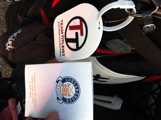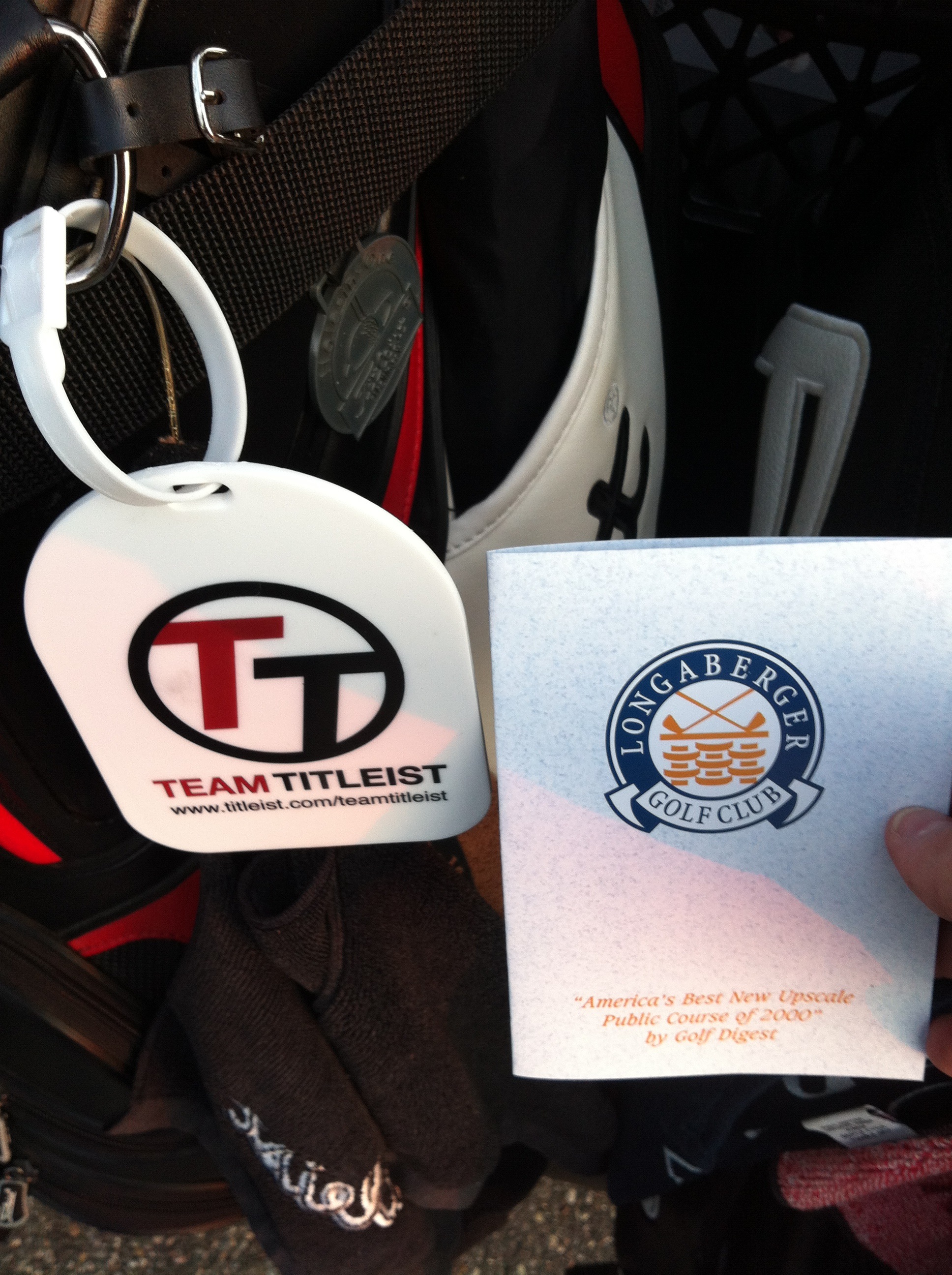 Representing TT @ Longaberger just this summer!!! Next to my Titleist Hole in One bag tag!