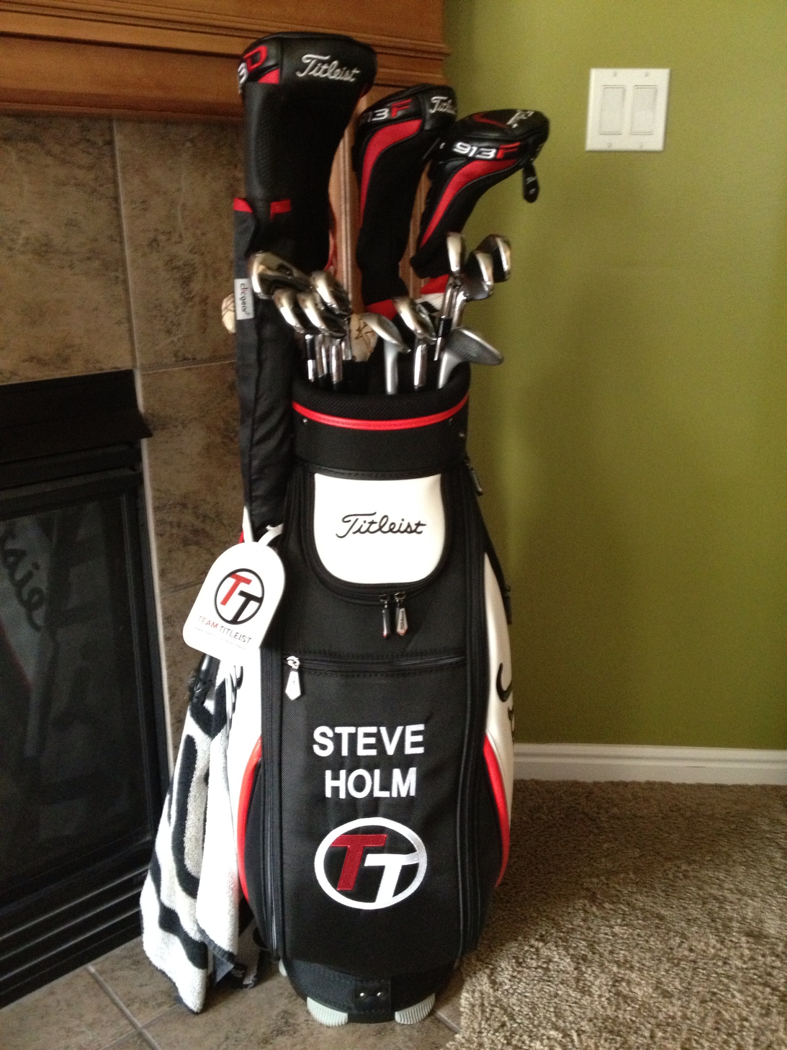 Anyone have photos of their custom Titleist bag they can post and show off? I'll be ordering one from the pro shop, and have seen from some of you folks what the TT logo looks like and where it is put on the bag, but haven't seen any other custom jobs that may have the club logo on it, or some other kind of custom logo and where it goes on the bag, and would like to see some before making a final decision on a club logo, or getting the TT logo on it. Thanks in advance