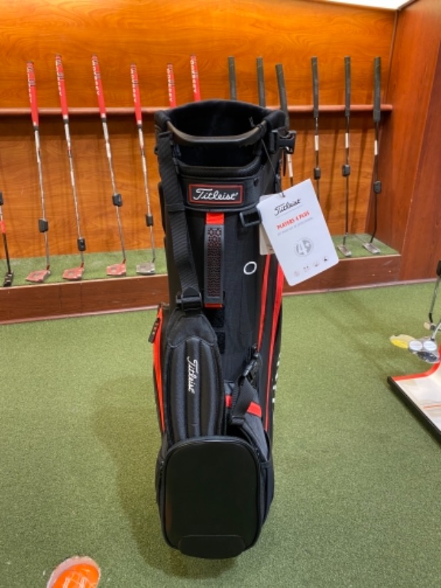 Both had a leather style front pocket. Suede material in the club hole openings. Cart strap moved in the hybird and new pocket placements. Prices were about the same too.